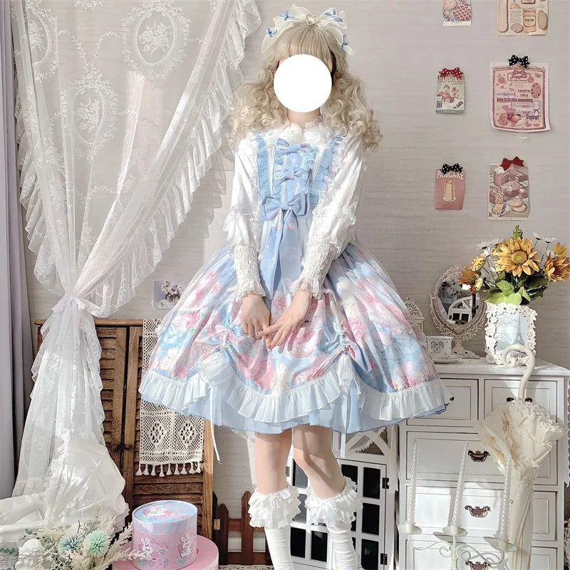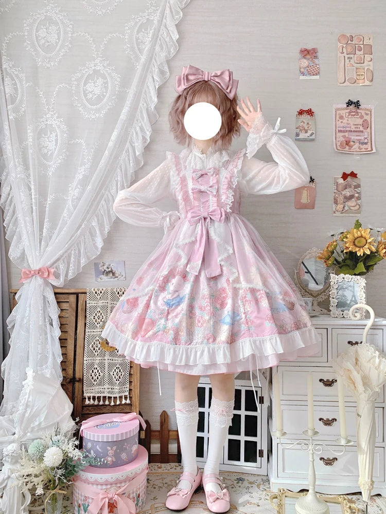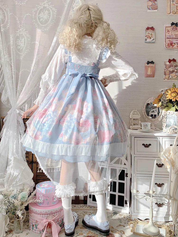 Lolita Style Square Collar Cartoon Printing Dress