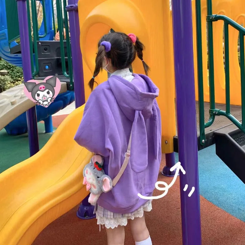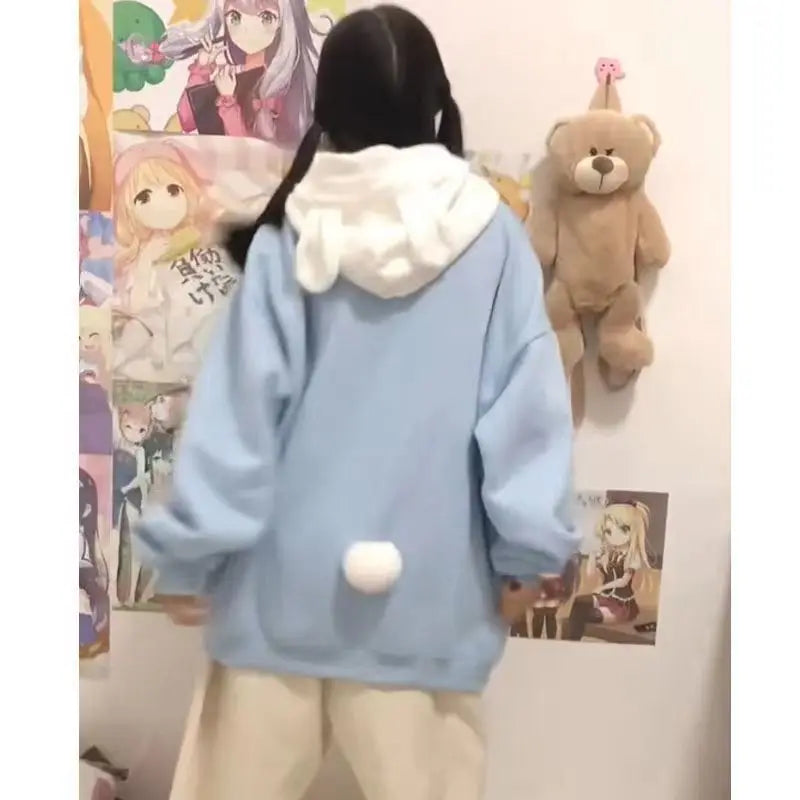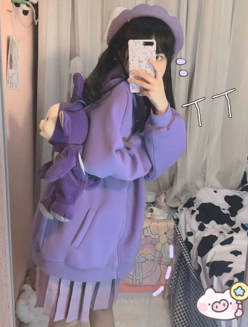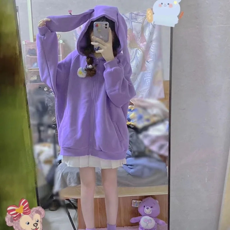 Kawaii Rabbit Ear Sweater Long Sleeve Loose Casual Embroidered Zipper Hoodie